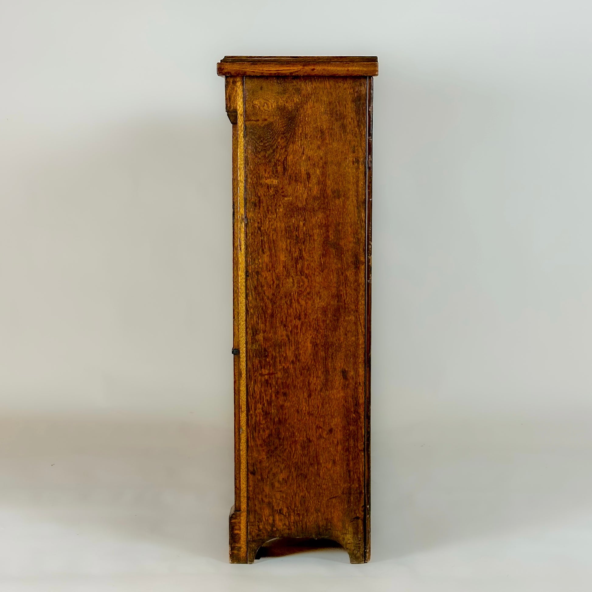 In good antique condition. The bookcase shows age-related wear throughout, including marks and scratches, particularly to the front. Watermarks are present on the shelves, and there are some scratches along the base. Solid and structurally sound with an attractive, well-aged finish.